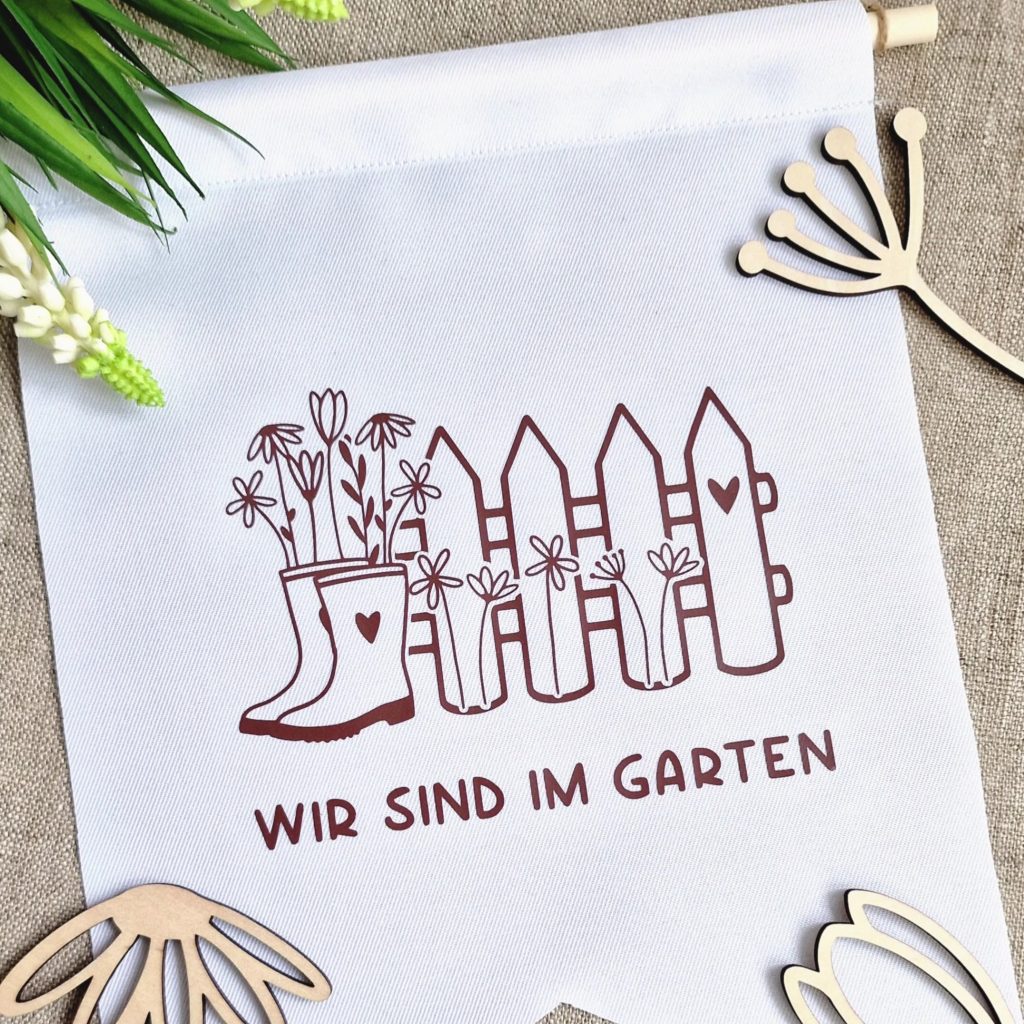 Wenn du gerne mit anderer Folie plotten möchtest, die länger oder heißer gepresst werden muss, verwende einfach einen Wimpel aus Baumwolle. Der verträgt dann deutlich mehr Temperatur und ist auch für viele verschiedene Plotterfolien geeignet.