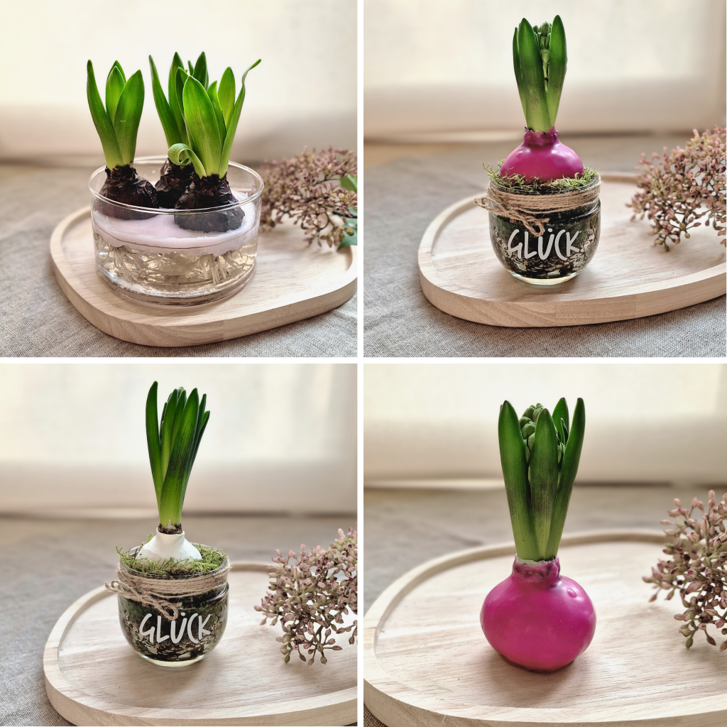 - vorgetriebene Hyazinthenzwiebeln (ohne Topf, ohne Erde)
