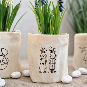Für unsere Osterdekoration haben wir Gläser mit kleinen Stoffbeuteln überzogen, die wir vorher mit unseren Ostermotiven beplottet haben. Wie es geht, zeigen wir dir in dieser Anleitung Schritt für Schritt.