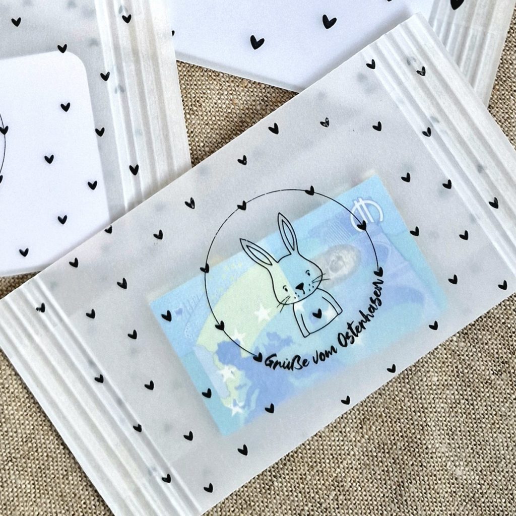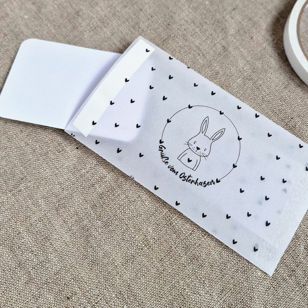 [enthält Werbung] Mit diesem Umschlag aus bedrucktem Transparentpapier lassen sich Geldgeschenke oder Gutscheine zu Ostern richtig schön verpacken. Weil sie durchscheinend sind, kann man den Inhalt ein wenig erahnen. Das steigert die Vorfreude.